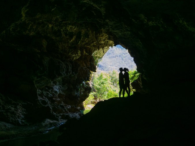 De eerste kilometers gaan er vlotjes door en dan beginnen de karstrotsformaties op de duiken. Velen vergelijken dit met het uitzicht van de Ha Giang loop in Vietnam, maar wij vinden beiden dat dit zelfs niet in de buurt komt. De vele vrachtwagens die continu passeren en enorm veel stof doen opwaaien helpen hier in ieder geval niet bij. De Takhek loop is “all about the caves”, en dus bezoeken we de eerste grot die we tegenkomen: de Xang cave – oftewel Olifantengrot voor de niet Laotiaans sprekende mens. Een snelle google search toont ons een rotsformatie in de vorm van een olifant, best wel leuk om eens te zien dus. We gaan binnen en lopen elk drie keer de volledige grot af, maar geen olifant te bespeuren. Wanneer we het buiten nog eens grondig opzoeken, blijken er twee Xang caves te zijn in Laos, eentje in Takhek en eentje in Vang Vieng, waarbij deze dus de niet spectaculaire versie is.