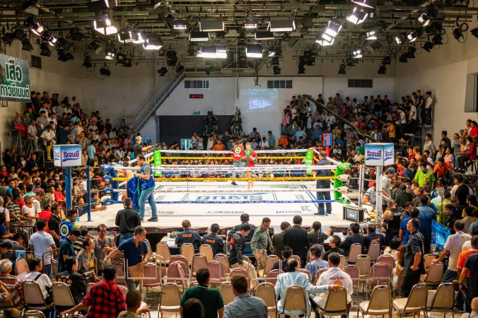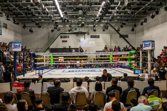 Tegen 15u zit de zaal afgeladen vol en kan het spektakel beginnen. Bij aanvang van elke bokskamp worden we getrakteerd op een rituele dans van beide deelnemers, iets wat er voor nogal random en vooral grappig uitziet, maar voor de Thai heel betekenisvol is. Het is een dans die dankbaarheid en respect uitdrukt tegenover de mensen die het hen mogelijk maken om in de ring te staan: hun coaches, trainer, familie etc. Terwijl ze dit ritueel uitvoeren hebben ze ook een band rond hun hoofd die ze zelf niet mogen aanraken. Ze wordt opgezet door de trainer en mag de grond niet raken. Daarom kruipen ze ook vaak over de koorden van de ring i.p.v. ertussen door zoals vele boksers doen. Na het uitvoeren van deze rituele dans, waarbij ze elke hoek van de ring afgaan om die zo af te sluiten voor de kwade energie, wordt de hoofdband afgenomen en kan de kamp beginnen.