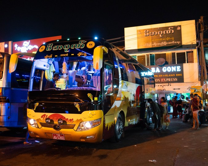 Vanavond vertrekken we naar een nieuwe stad Hpa-An, die op zo’n acht uur rijden ligt. We eten snel nog een hapje alvorens een Grab ons naar de bushalte, die verdomd ver van het centrum blijkt te liggen, brengt Het duurt zowat 1u15 minuten (zonder file!) om aan de bushalte te geraken, al hebben we beiden niet de volledige rit meegemaakt. Ergens halverwege zijn we in slaap gevallen, en de chauffeur maakt ons wakker als we toekomen aan de bushalte. Hij dropt ons werkelijk naast de correcte bus, wat een service weer! De bus vertrekt pas tegen 20u, en dus doden we de tijd maar met het eten van noedels en het drinken van een pintje, het perfecte tijdsverdrijf. Een half uurtje voor we vertrekken keren we terug richting het busloket en krijgen we ons plaatsje toegewezen voor vannacht. Weer een nachtbus, weer transport. Voor Nick geen probleem, voor Ann-Sofie is slapen echter uit den boze. Ze gaat dus weer een plezante nacht tegemoet.
