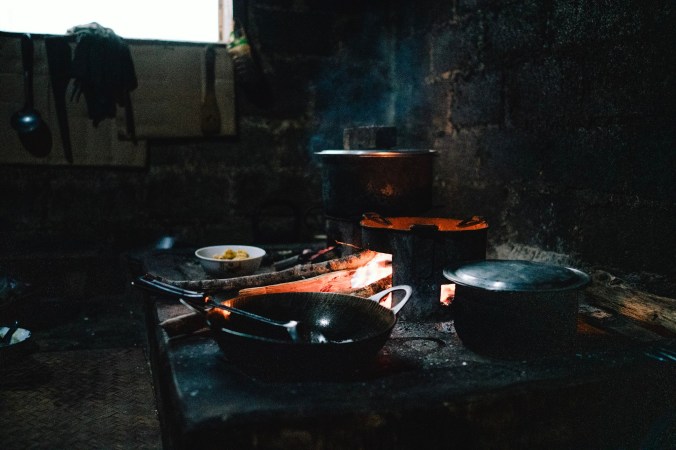 Het begint ondertussen serieus af te koelen, dus bedanken we vriendelijk voor de ijskoude emmerdouche. In de keuken is het echter wel lekker warm, dus gaan we ons even bij het vuur zetten, terwijl we zien hoe de heerlijke maaltijd wordt voorbereid. Helpen is natuurlijk niet toegestaan! De klaargemaakte groentjes worden een voor een in metalen kommen gedaan die op elkaar passen in een soort toren, waarna ze op tafel geserveerd worden. Pompoen, curry, spinazie, tofu, boontjes, vis, avocado salade… Geen idee waar ze dit allemaal vandaan hebben getoverd, maar het is weer overheerlijk! Met een kampvuur kunnen we gezellig bijpraten en deze prachtige dag samen afsluiten.
