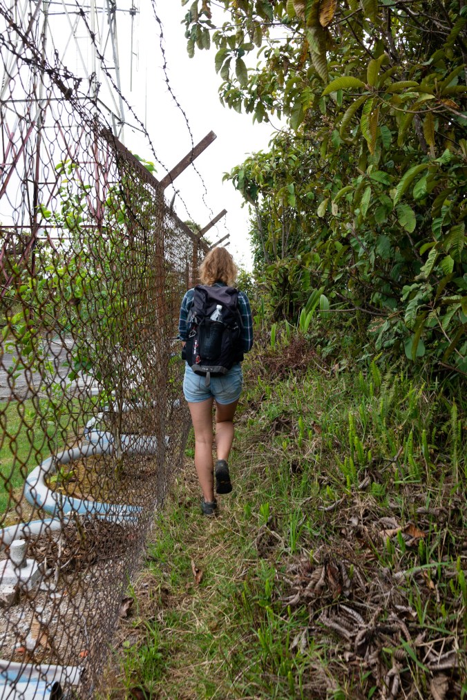 Wanneer we plots boven aan het zendstation uitkomen, het zogenaamde verboden terrein van het zendstation, lijkt het ons erop dat we toch nog de echte Mossy Forrest gemist hebben. De route zou hier ergens verder moeten lopen, maar wij zien ze helaas niet meer, ook niet na 2 toertjes rond de prikkeldraad gelopen te zijn.