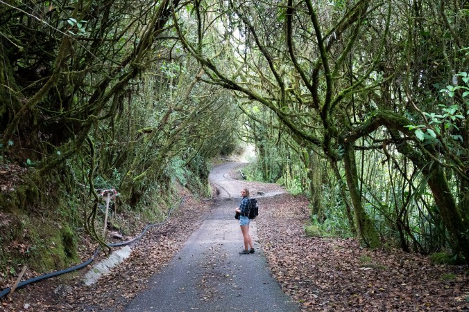 Het werd ons beschreven als de omgeving van een Lord of the Rings film, en dit stukje bos voldoet 100% aan deze verwachting. Een wildgroei van bomen die van boven tot onder bedekt zijn met mos met de perfecte groene tint. We merken al snel dat er hier ooit een wandelpad gelopen moet hebben, en we besluiten het even te volgen, in een omgeving die we zelfs met onze eigen ogen moeilijk kunnen geloven. Dit is de echte Mossy Forrest, dit is waar we al 3 dagen naar op zoek zijn. Eindelijk!
