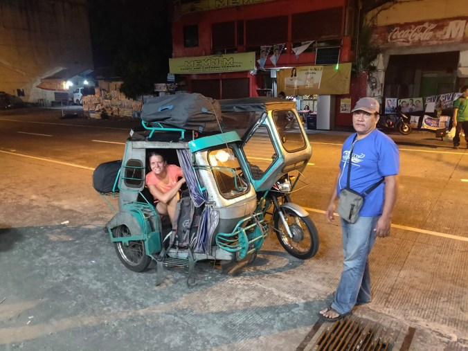 17u later dan ons vertrek is het dan eindelijk zo ver, we komen aan in Daraga, onze stop! Daraga is het busstation dichtst bij Legazpi, en dus kunnen we opgelucht ademhalen wanneer we de bagage overladen in een tricycle. De laatste 3km naar ons verblijf gaan vlotjes, en tegen 23u30 zijn we ingecheckt in een pracht van een kamer, de eerste in de Filippijnen. Het zicht op Mount Mayon, de meest vulkaanvormige vulkaan ter wereld, ontbreekt ons op dit moment omdat die natuurlijk niet verlicht is, maar hopelijk is dat morgen beter. Een warme douche en een proper bed, meer hebben we op dit moment niet nodig. De volle 17u transport, wie doet beter?